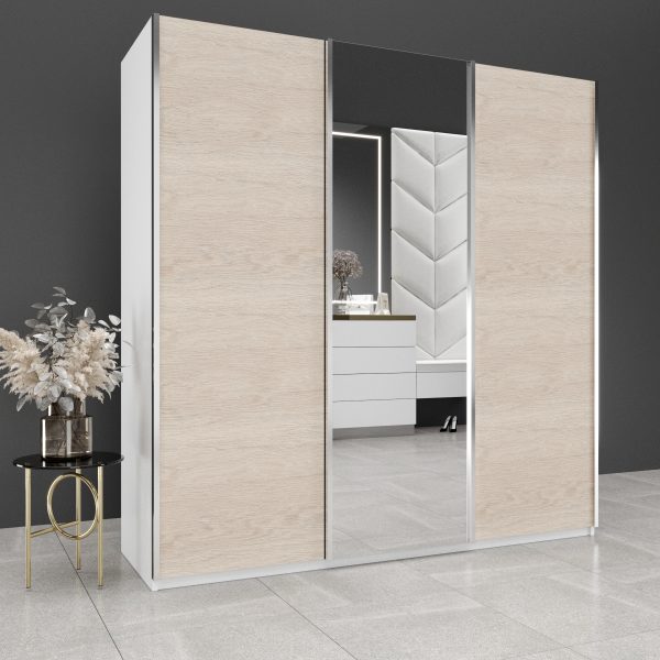 • Nawierzchniowy system jezdny –  szafa ELBA jest świetnym rozwiązaniem dla osób które szukają czegoś co będzie wyróżniało ich mebel spośród innych. W tym modelu zastosowaliśmy nawierzchniowy system jezdny, który montowany jest na zewnątrz korpusu, dzięki temu drzwi po zamknięciu dają efekt zabudowania całej bryły, widoczne są tylko fronty i cokół dolny. Szafa uzyskuje NOWOCZESNY, wyjątkowy i elegancki wygląd.
