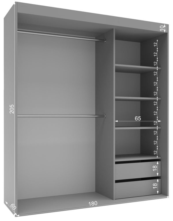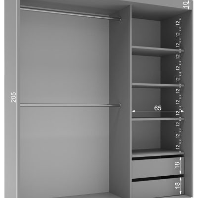 - 18 mm – dzięki temu, że płyta laminowana ma 18 mm grubości (grubsza niż u innych producentów), szafa po zmontowaniu jest stabilniejsza , bardziej wytrzymała i będzie służyć na lata. Szafa wykonana z grubszej płyty, wizualnie prezentuje się o wiele lepiej w pomieszczeniu. Co najważniejsze, szafa poradzi sobie z każdym ciężarem ubrań. Bluzki, sukienki, kurtki i płaszcze – z pewnością idealnie wpasują się w rozmiar szafy, a ich ciężar nie wpłynie na jej stabilność.