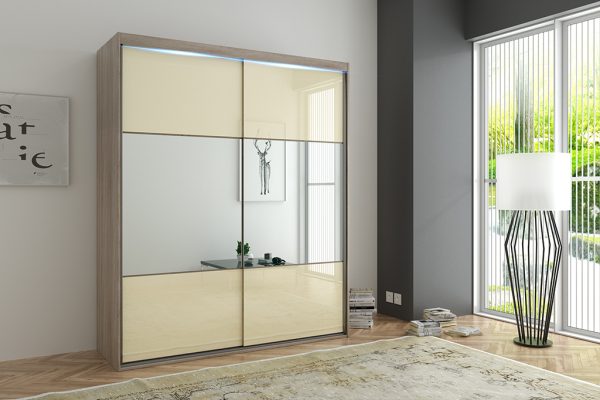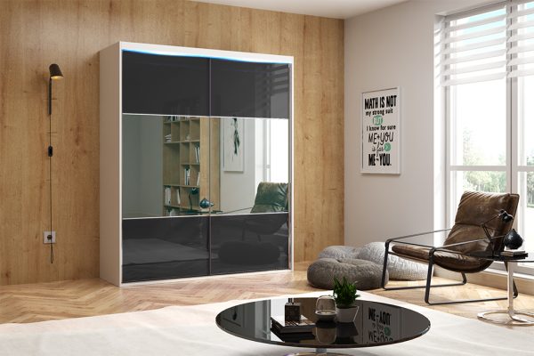 • Szkło „lacobel” – w naszej ofercie czeka na Ciebie 8 najnowszych i wyjątkowych kolorów szkła, dzięki czemu fronty w Twojej szafie uzyskają efekt POŁYSKU. W modelu PORTO 17 lustro powiększa optycznie i rozświetli wnętrze, a szkło lacobel nadaje szyku i elegancji…