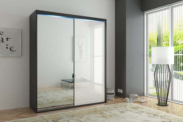 • Szkło „lacobel” – w naszej ofercie czeka na Ciebie 8 najnowszych i wyjątkowych kolorów szkła, dzięki czemu fronty w Twojej szafie uzyskają efekt POŁYSKU. W modelu PORTO 18 lustro powiększa optycznie i rozświetli wnętrze, a szkło lacobel nadaje szyku i elegancji…