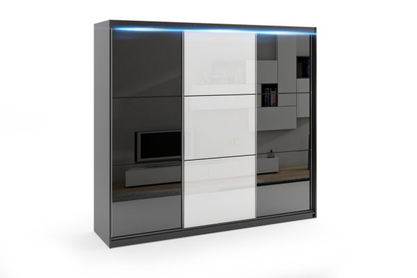 • Szkło „lacobel” – w naszej ofercie czeka na Ciebie 8 najnowszych i wyjątkowych kolorów szkła, dzięki czemu front Twojej szafy uzyskuje efekt POŁYSKU. W modelu PORTO 8 szkło lacobel nadaje szafie szyku i elegancji…